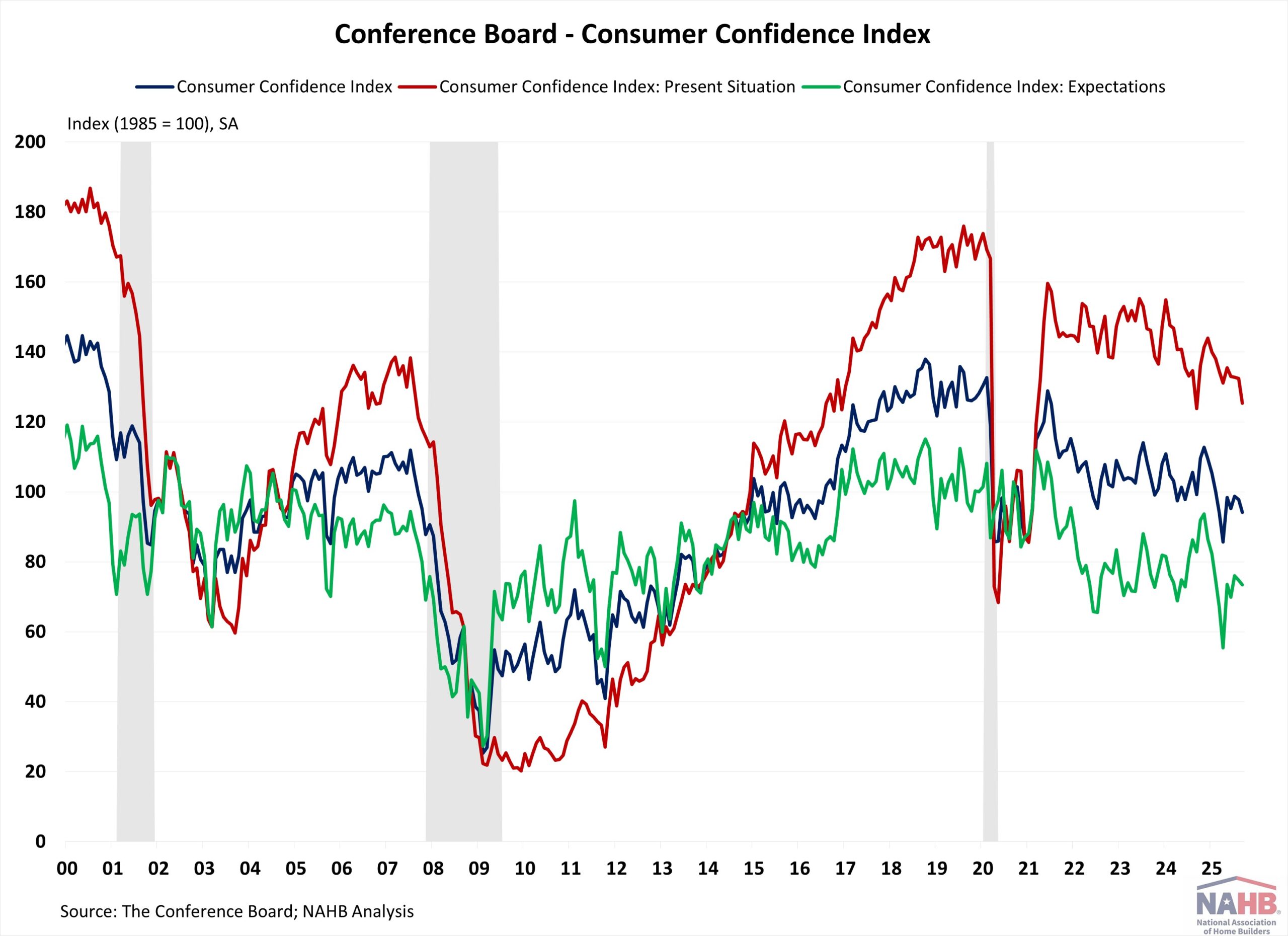 The Consumer Confidence Index, reported by the Conference Board, is a survey measuring how optimistic or pessimistic consumers feel about their financial situation. This index fell from 97.8 to 94.2 in September, the lowest level since April. The Consumer Confidence Index consists of two components: how consumers feel about their present situation and their expected situation. In September, the Present Situation Index decreased 7.0 points from 132.4 to 125.4, the largest monthly decline since September 2024; the Expectation Situation Index dropped 1.3 points from 74.7 to 73.4. This is the eighth consecutive month that the Expectation Index has been below 80, a threshold that often signals a recession within a year.
